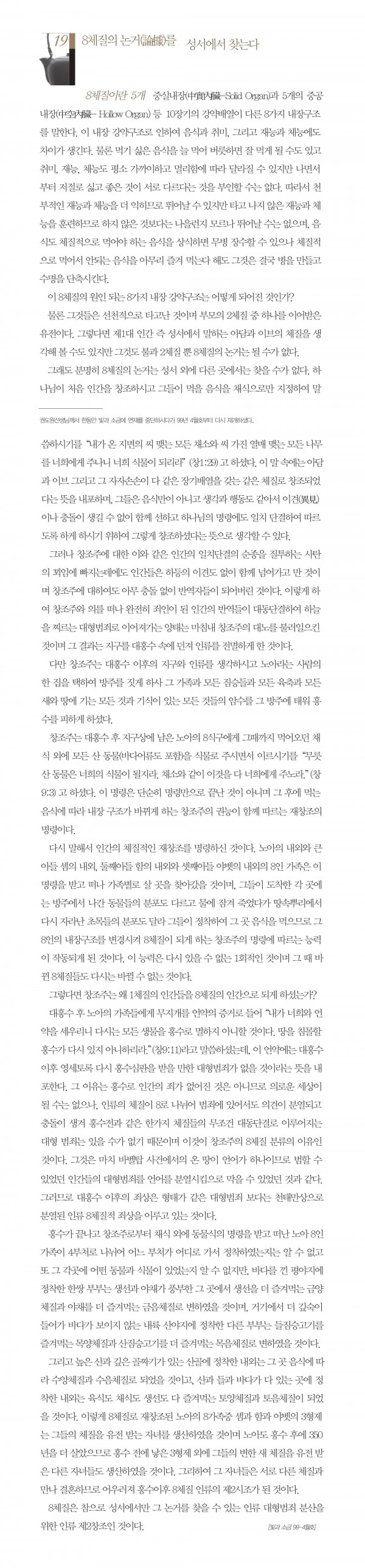 빛과 소금 - 8체질의 논거를 성서에서 찾는다 페이지 정보 작성자 최고관리자 댓글 0건 조회 9,519회 작성일 2019-10-01 18:05 본문 빛과 소금에 연재된 글들 중에서 - 8체질의 논거를 성서에서 찾는다 목록 이전글빛과 소금 - 비타민과 체질 19.10.01 다음글미래 한국 매거진 인터뷰 - 모든 사람은 8가지 체질을 타고 난다 19.10.01 댓글목록 댓글목록 등록된 댓글이 없습니다.